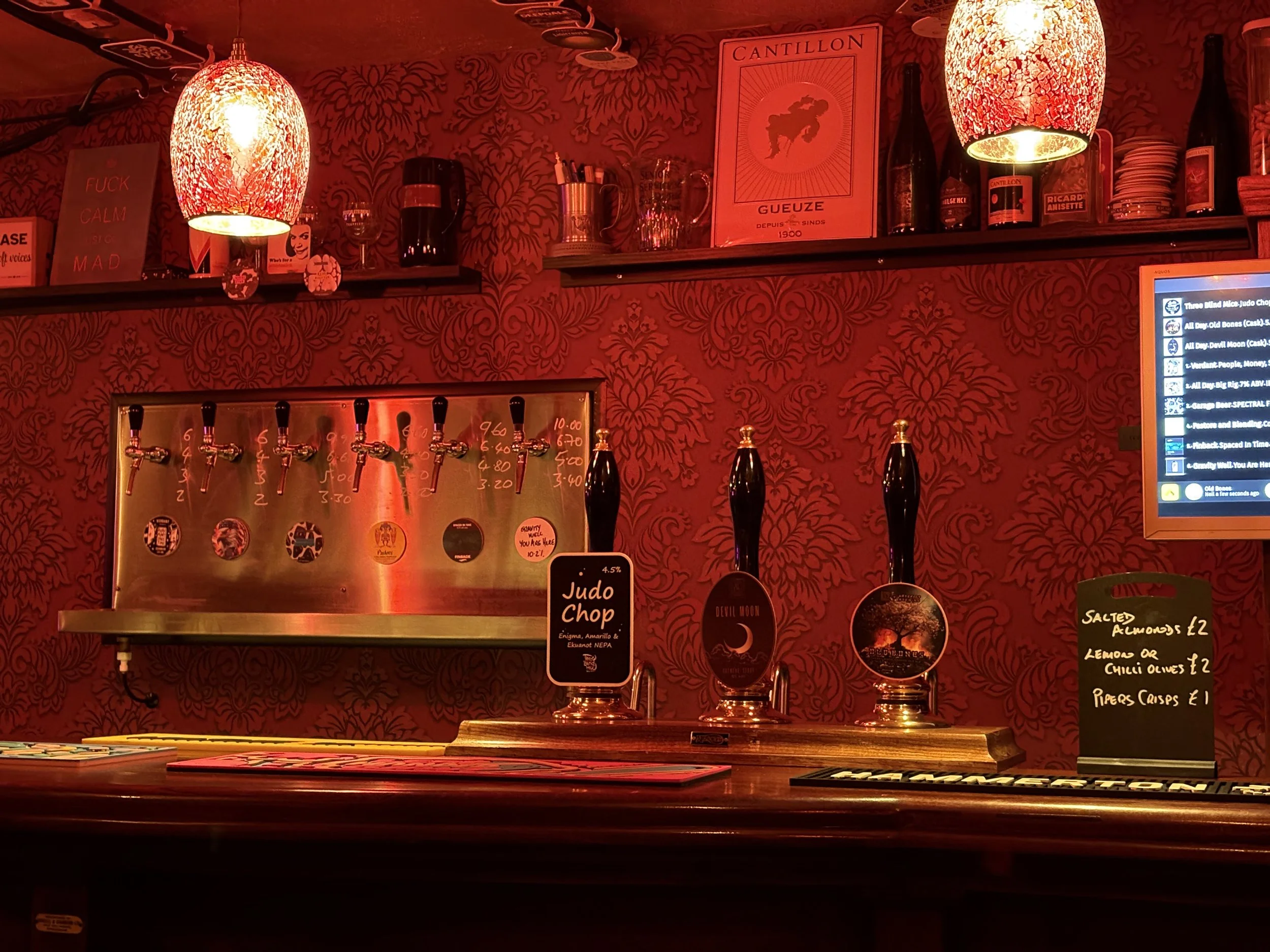 We have three handpulls and six draught keg lines of constantly changing beers from premium brewers such as Three Blind Mice, Nene Valley, Verdant, Gravity Well plus many more.